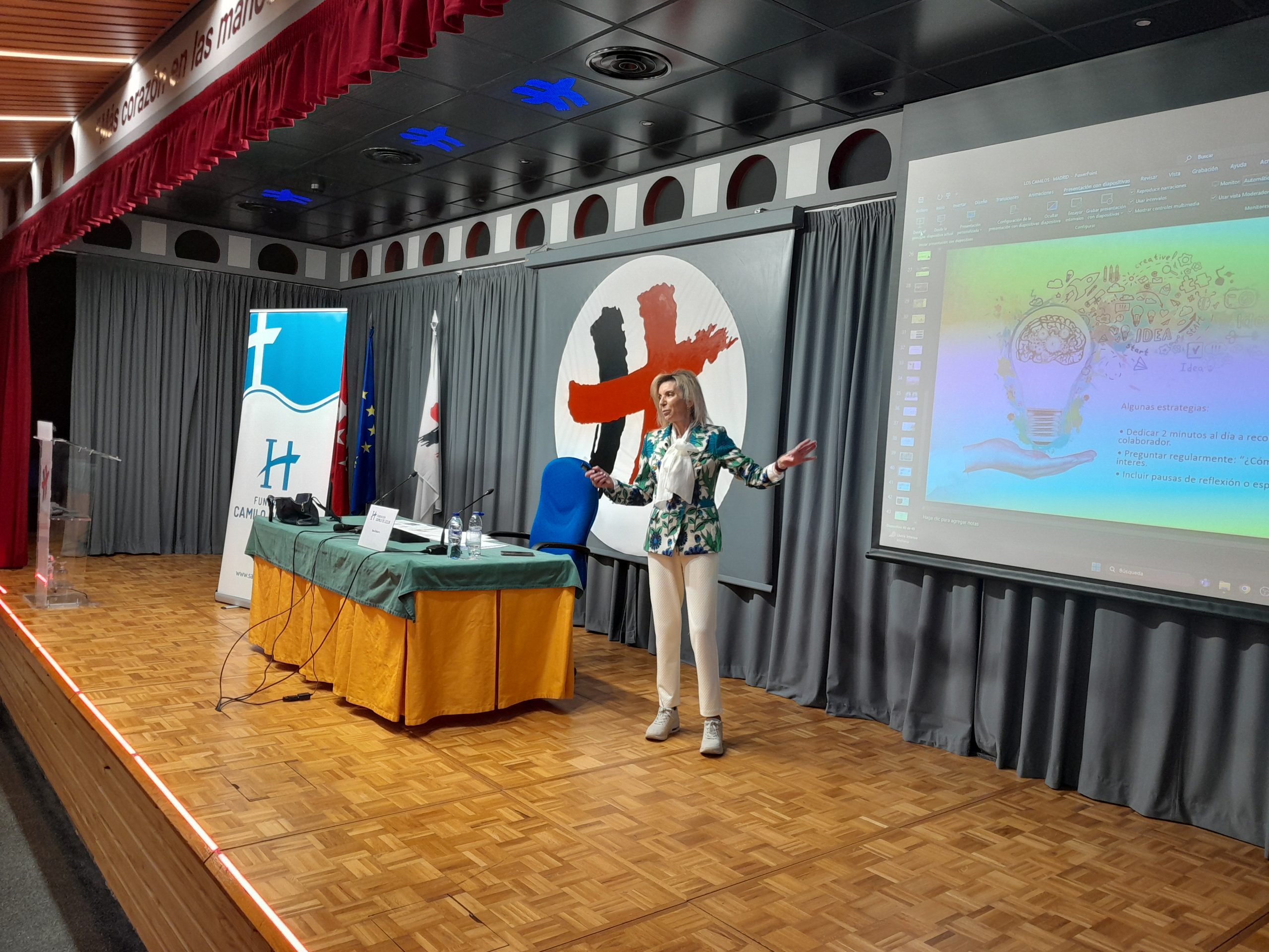 Posteriormente, intervino Sara Dobarro, investigadora, neurocientífica y experta en comunicación, con el panel:  El alma del cuidado: liderar con sentido, humanidad y corazón. Durante su exposición expresó la importancia del relato sobre el impacto del cuidado en la vida de un residente religioso.